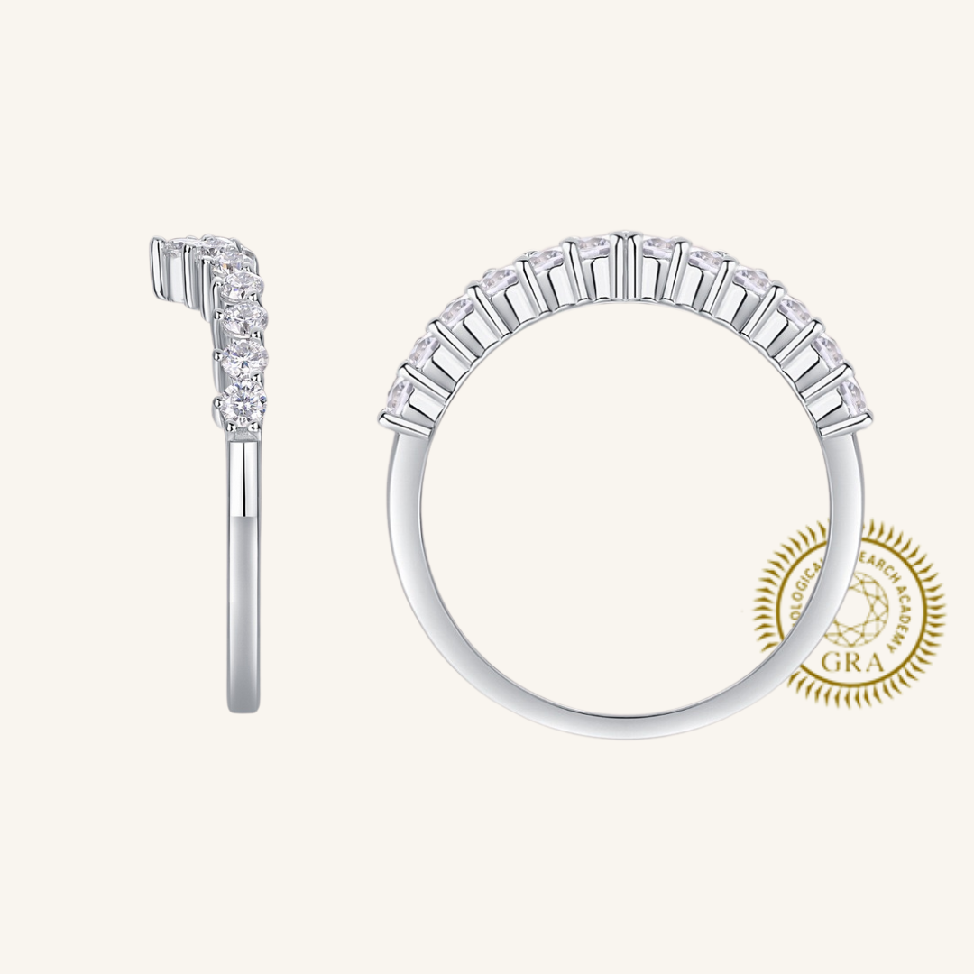 - Perfekt zum Stapeln: Dieses Moissanit-V-Band lässt sich ideal mit einem Verlobungsring kombinieren oder als eigenständiges Statement-Stück tragen und ist somit eine vielseitige Wahl für jeden Anlass.