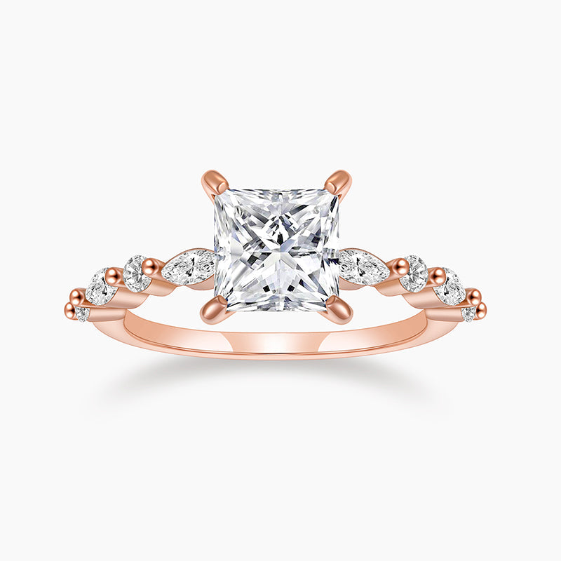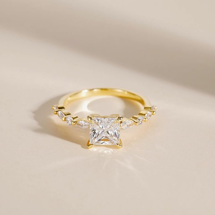 2 Karat Solitärring aus Sterlingsilber mit Prinzessschliff und Zirkonia im Kissenschliff
