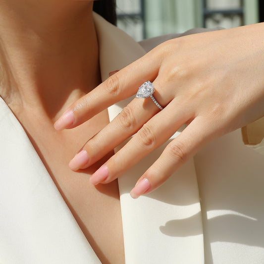 Pear Cut 4。5 Carat Moissanite Engagement Ring for Women – 38 Side Stones, Sterling Silver with 18K White Gold Plating, D Color VVS1 Clarity