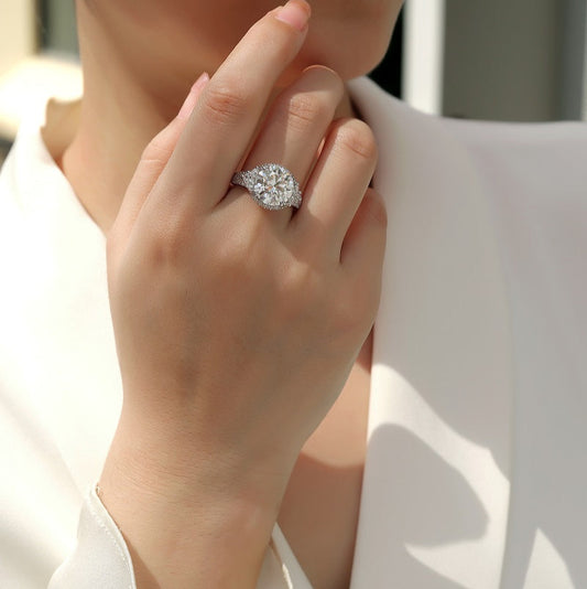 Pavé Moissanite Cluster Ring, 2mm, 1.5mm & 1.2mm Moissanite Stones,