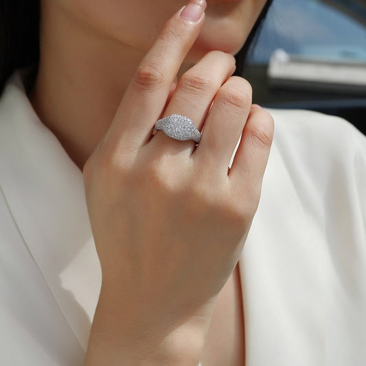 Pavé Moissanite Dome Ring | 133 Stones | 18K White Gold Plated